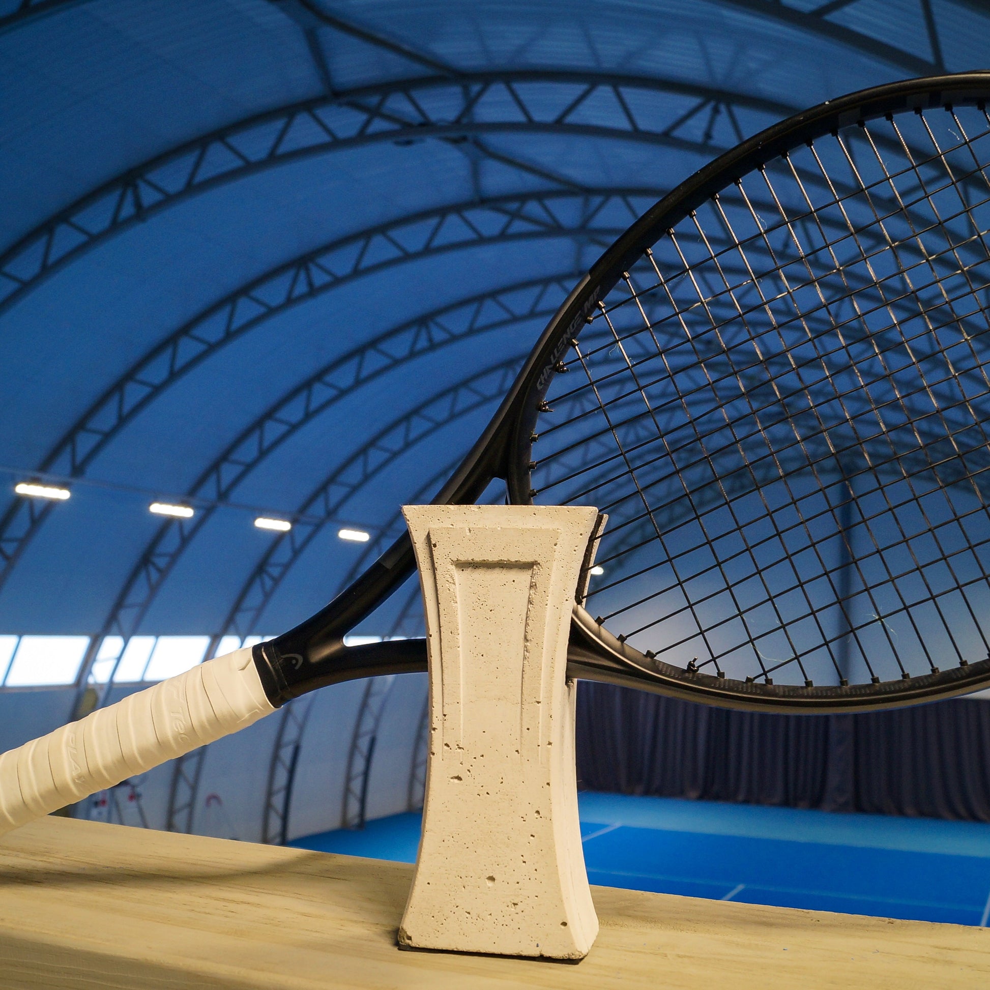 This handcrafted concrete holder is specially designed for storing a tennis racket. Its minimalist design, solid structure, and sturdy concrete base ensure stability and long-lasting use. Each holder is handcrafted, ensuring slight variations and a one-of-a-kind texture. This holder is not only a practical solution but also a modern interior accent for gyms, homes, or offices.